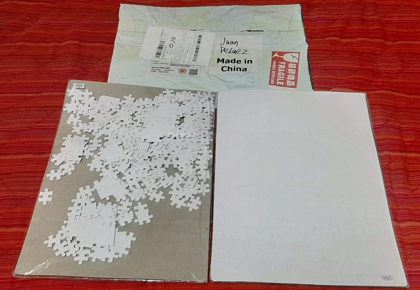 Pedí dos rompecabezas de muestra, y uno de ellos llegó desarmado, así que me tocó tirarlo a la basura porque me fue imposible armarlo al estar en blanco. Deben empacarlos mejor para que eso no ocurra. La calidad del material es muy deficiente y se desprenden las capas de papel al manipularlo. Lo siento pero seguiré buscando mejor calidad en otro proveedor.